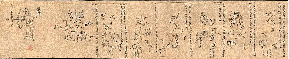 敦煌の星図 (Dunhuang map、Dunhuang Star map) は 古代中国天文学における最も初期の既知の図による夜空の描写の 1 つで、 唐朝 (618 年 - 907 年) にさかのぼる。 この星図の発見以前に、初期の中国文書に記録された星に関連する情報の多くは、 憶測にさらされてきた。 この星図はこのような文書記録の視覚的実証を提供し、 敦煌写本に見られる一連のイラストを含む 巻物の一部分を形成する。 これは現在の所、世界最古の既知の完全な星の地図帳と見なされている。