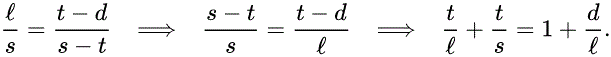 最も右端の等式は ℓ/t あるいは s/t のいずれかに関して解くことができる :