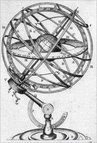 渾天儀は教育に有益として生き延び、骨格的天球儀として記述され、 一連の輪が天球の大円を表示し、水平線内の軸で回転した。 地球が中心にあればプトレマイオス的、 太陽が中心にあればコペルニクス的と呼ばれる。