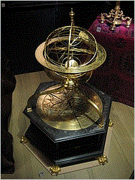 Armillary sphere は直訳すれば「環球儀」というべきですが、 古代中国の「渾天儀」とほぼ同じもので、古代ギリシャにも古代のイスラム世界にもあったものです。 渾天儀は中国のものとヨーロッパのものは若干違いがありますが、単に区別せずに「渾天儀」と訳します。 「渾天儀」は金属の輪からなっており、初期のものは、 この輪の個数が少なく、単にアーミラ (輪) と呼ばれ、輪の個数が増えたものが「渾天儀」(環球儀) なのです。