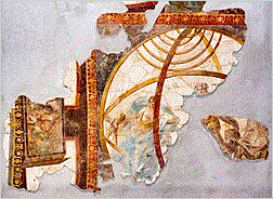 | AD 1 世紀中頃の Stabiae の断片的フレスコ画の渾天儀内部の神話の人物。 |