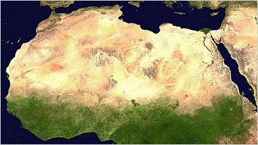 | サハラ砂漠の衛星像、NASA により撮影 |