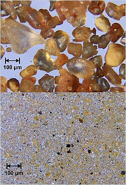 エアロゾル化した砂塵のミネラルは典型的には変更されて、 土壌中よりは大気中でもっと溶けやすい。 鉄を大気中でもっと溶けるように変更すると知られる工程の幾つかは : 酸性反応 (acid reaction) と 光化学である。 粘土, 長石, そして酸化鉄 (iron oxides) は サハラ砂漠の砂塵に含まれる。 サハラ砂漠の砂塵の粘土は酸化鉄よりも、はるかに高い部分溶解性 (fractional solubility) を 見せる傾向がある。 サハラ砂漠のこれらのミネラル等の形式の相対的な量の変化により、 溶解する砂塵の量が変化する。