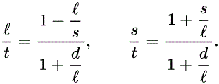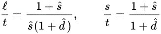 最も右端の等式は ℓ/t あるいは s/t のいずれかに関して解くことができる :