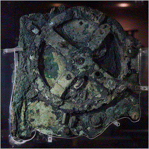 アンティキティラ島の機械はアナログ計算機で BC 2 世紀に天体の位置を計算するためにデザインされた。 |