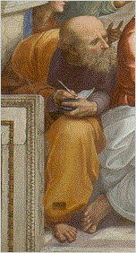 ミレトスのターレス (Thales of Miletus) はギリシャ哲学の イオニア学派の主な人物である。 彼は通常、現代の史学ではギリシャ科学の伝統を始めたともされている。 もっとも他の人はこの属性に疑問を投げかけている。 ヘシオドス (Hesiod) や ホメロス (Homer) のような先駆者のように、ターレスは地球が平坦で、 原始的かつ終わりのない大洋に静止していることを認めた。 彼がまた顕著に提唱していることは宇宙が基本的に水で構成されていることであった。 ターレスが始めた伝統の最も有名な後継者は プラトン (Plato) と アリストテレス (Aristotle) であった。 一方、多くの考察は直観に頼り続けたが、 この仕事の持続する遺産は、宇宙の通常運行の非神秘的説明を提供したことである; 数学 (とりわけ幾何学) が随分進展し、考察している問題に適用された; 考えられたことは、観測により世界の動作説明の候補が不適格になることがあると思われた。